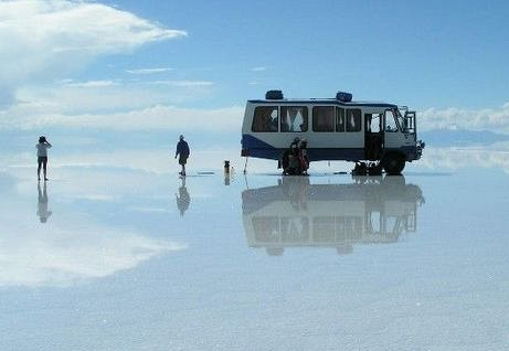 乌尤尼盐沼是由大约 4 万年前的巨大湖泊干涸后形成的,只有在雨季,硬壳般的盐沼表面才会形成光滑的镜面。它是世界上最大的盐沼,在盐沼上驾车前行,就好象处于一种虚无的状态,面积巨大的盐沼对阳光的反射让天空与自身完美的融合在了一起。