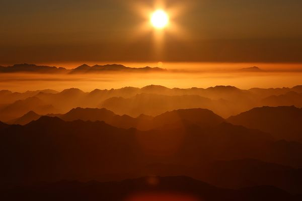 这张照片拍摄于2013年1月1日,新年的第一缕阳光照在埃及的西奈山上。