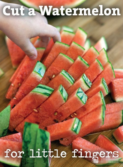 1、这样切西瓜真的是小孩子很容易吃,大人也不用怕吃到衣服上。