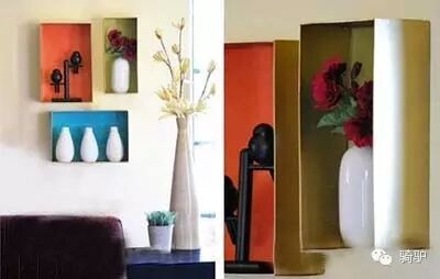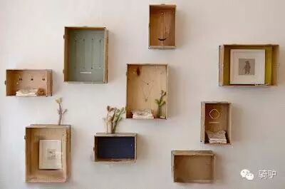 将鞋盒这样错落有致的挂在墙上,也很美。