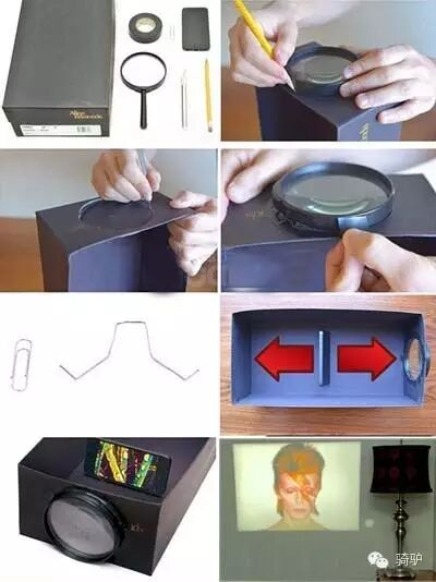 放大镜+鞋盒=幻灯机,有了它,可以从容地在墙上看手机上的视频,这真是个绝妙主意!