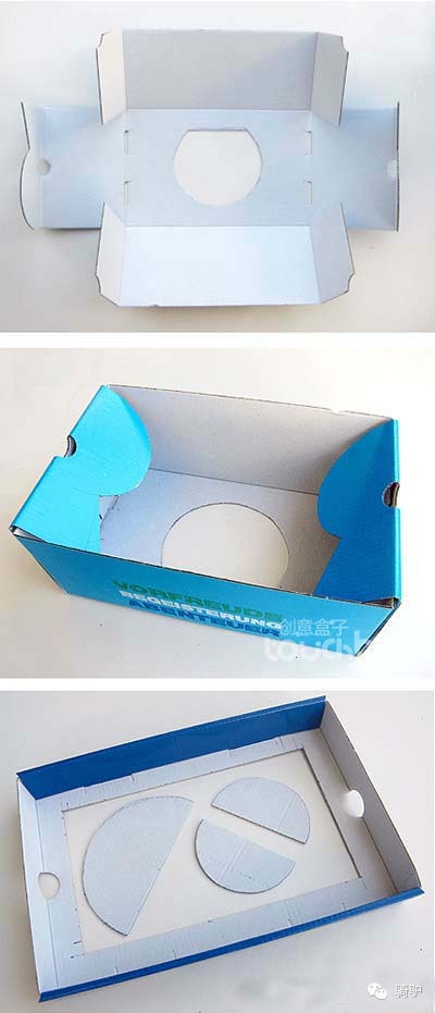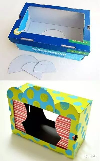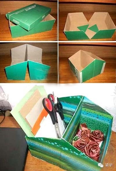敞口收纳盒:巧妙地将旧鞋盒改制成一个敞口的收纳盒,不妨一试。