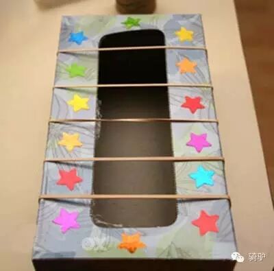 用鞋盒和橡皮筋制成的小乐器,仔细听听声音的变化吧!