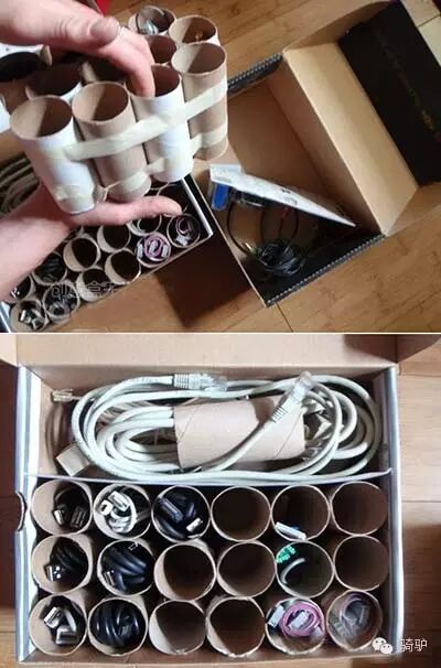 信息社会,家里各种各样的电线,插头品类繁多,有时找起来还挺难区分,这种方法可以很清楚地进行分类,一目了然,取用也非常方便。