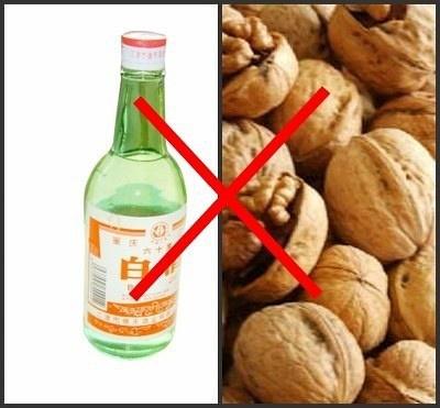 ▌11.白酒+核桃:易致血热,轻者燥咳,严重时会出鼻血