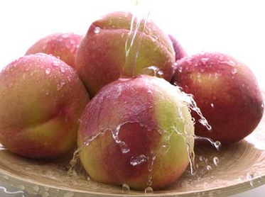 如何鉴别:鉴定桃子的质量,首先要根据品种、产地、上市时间,然后具体判别。区分桃子是否洗了“化学澡”主要通过颜色,一般的桃熟透的颜色是黄色或粉红色,不熟的则是淡淡的绿色,用工业柠檬酸浸泡后的桃红的很不正常,是鲜红色;普通的桃两三天就会开始腐烂,发霉、泡过的桃,放上几天还会很有光泽。